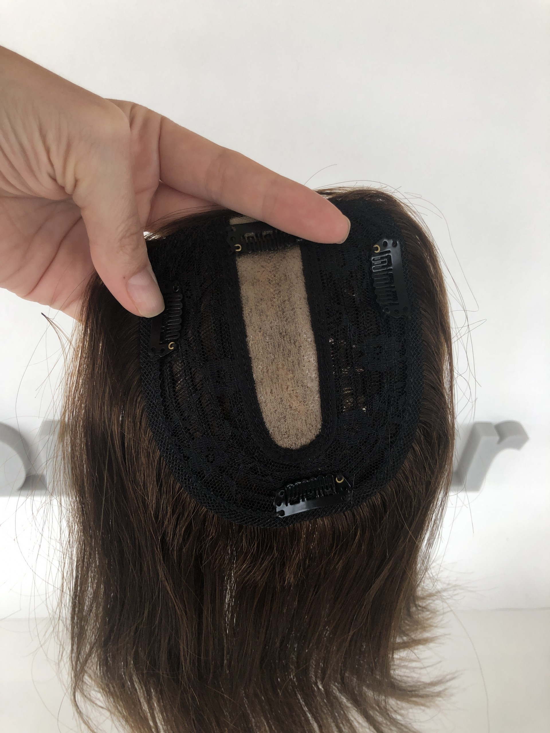 Накладка из натуральных волос, теменная накладка из 100% натурального волоса на макушку , размер 10х12, длина 25 см.