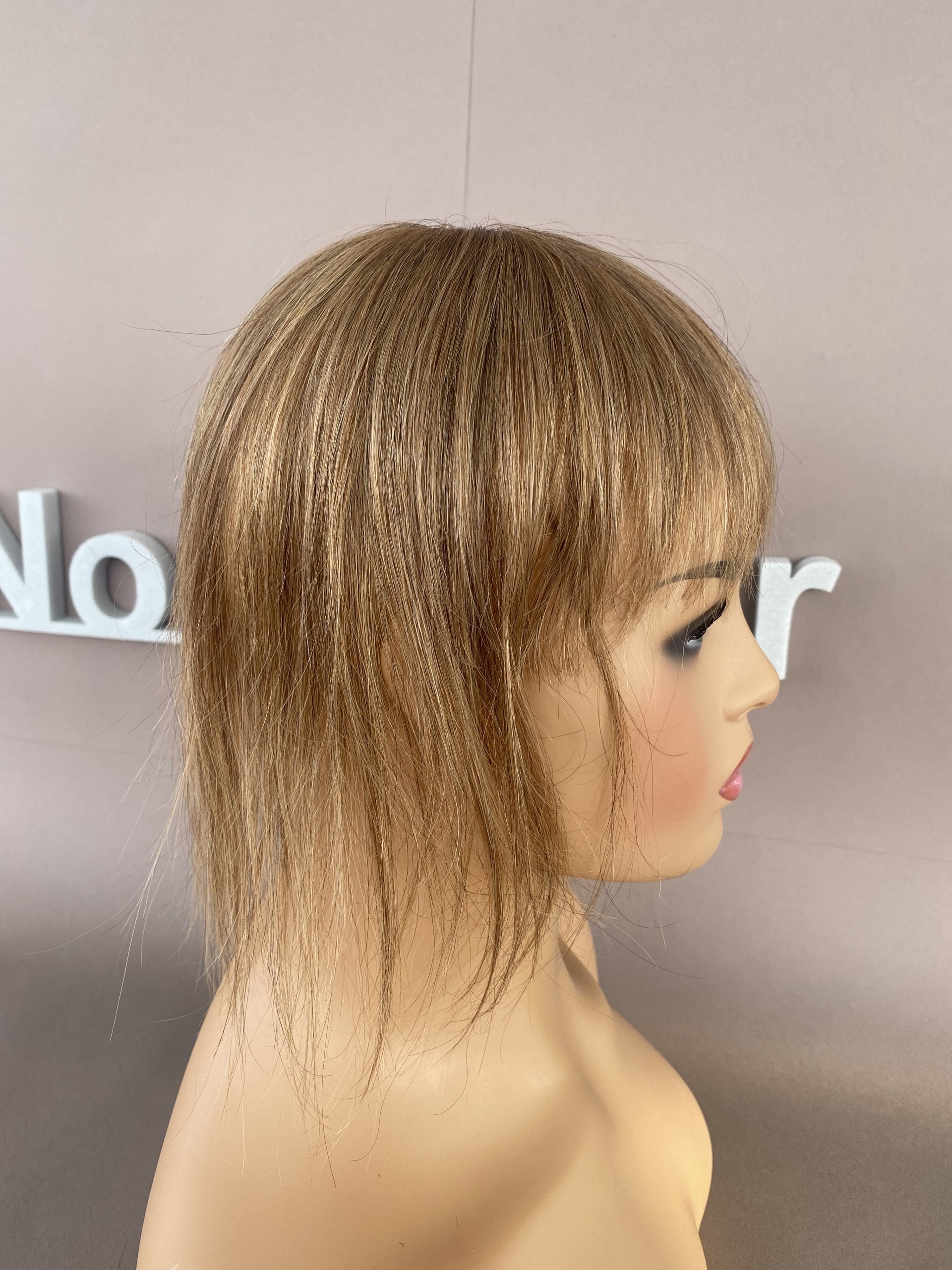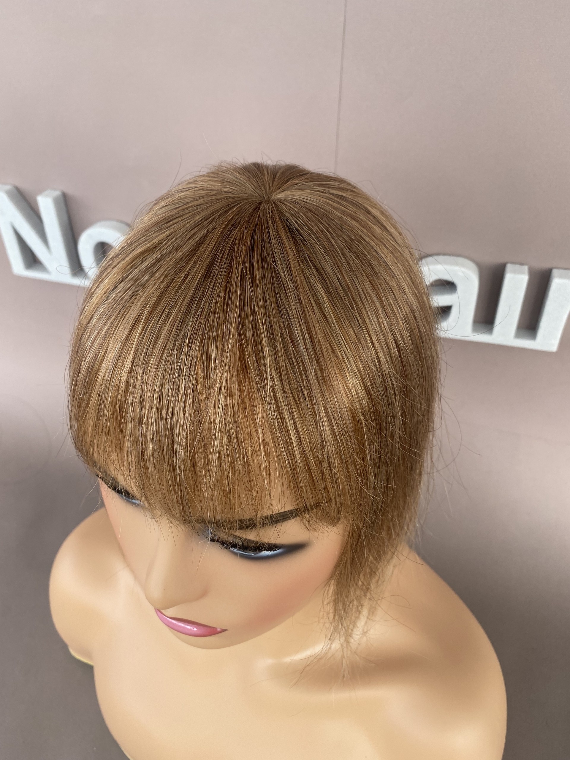 Накладки из натурального волоса с чёлкой (цвет 10) русый, теменная накладка из 100% натурального волоса на макушку , размер 8,5 см х 8,5см, длина 25 см.