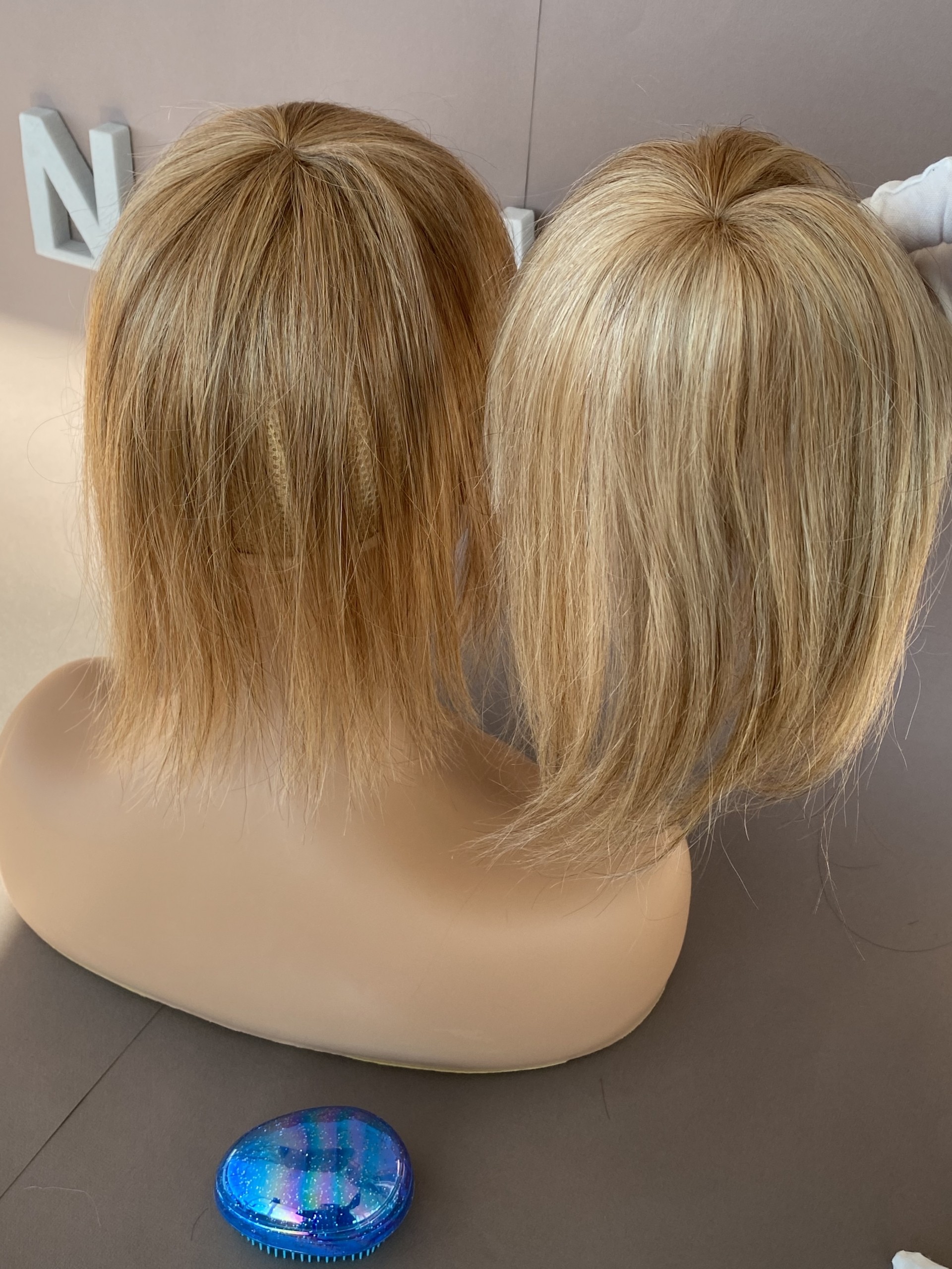 - тонировать так же, как ваши собственные волосы. Они не осыпаются и имеют имитацию кожи головы в области пробора (в зависимости от модели). Если вы носите пробор сбоку, просто сдвиньте накладку на бок, что ы пробор оказался в привычном месте.